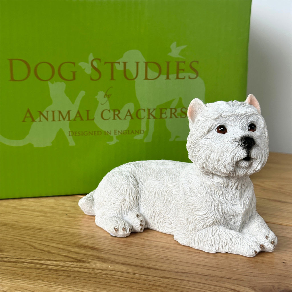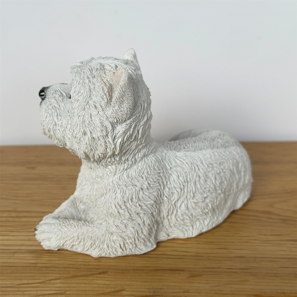 Bring a touch of canine charm to your space with this delightful West Highland Terrier figurine. Crafted with meticulous detail, featuring lifelike eyes and nose that capture the spirited personality of the beloved Westie breed. Measuring 13cm x 8.5cm x 7cm, it slots perfectly onto shelves, desks, or display units.